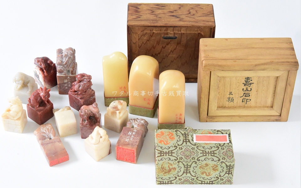 筆墨硯紙、印材、玉、田黄、寿山石など。