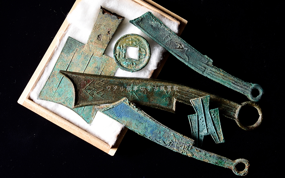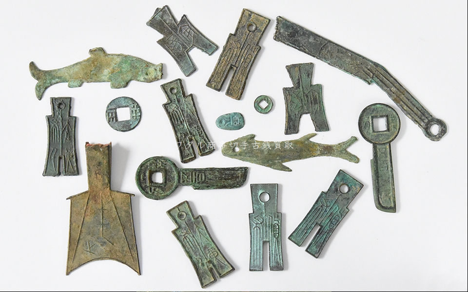 商(殷)時代から戦国時代にかけて、農具の鋤(すき)から変化したものが布幣(ふへい)と呼ばれましたが、このような古銭も高価買取り致します。