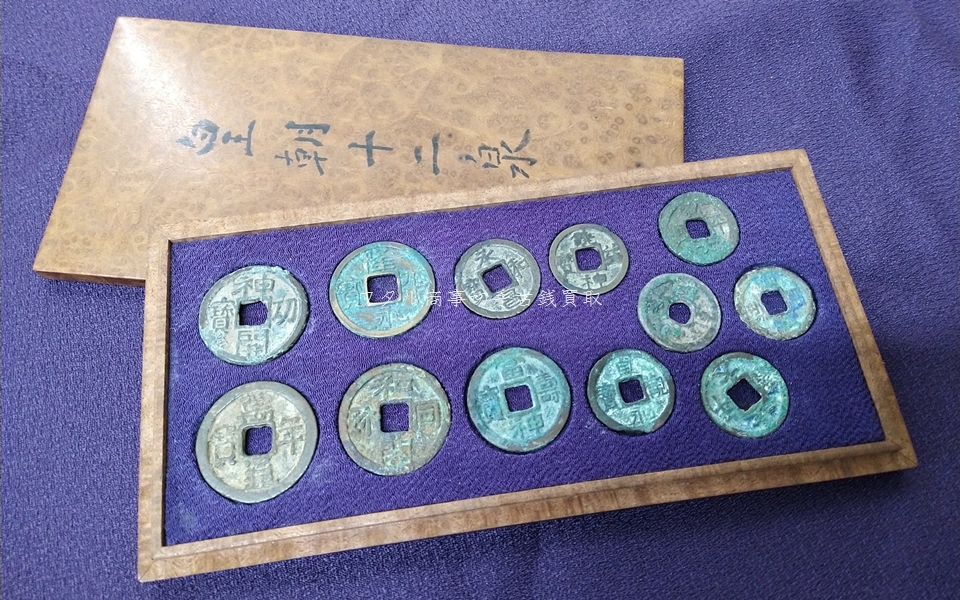 和銅元年(708)初鋳の和同開珎より天徳2年(958)初鋳の乾元大賓迄の250年間に渡り鋳造された十二種類の貨幣を皇朝銭と言い、最初の貨幣は和同開弥です。